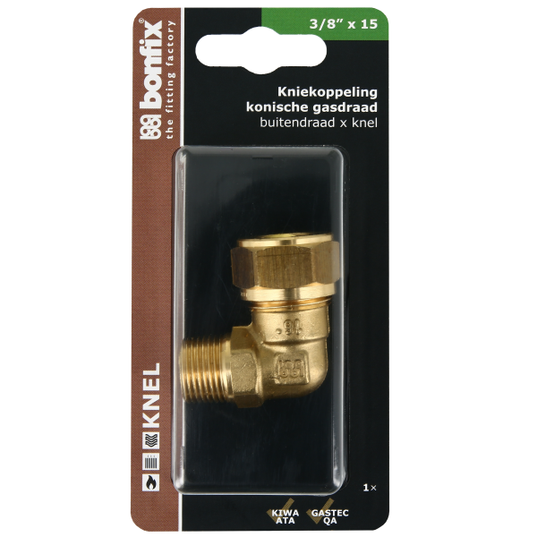 BONFIX Blister kniekoppeling 3/8" buitendraad x 15 mm