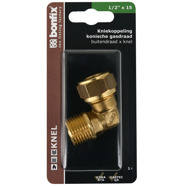 BONFIX Blister kniekoppeling 1/2" buitendraad x 15 mm