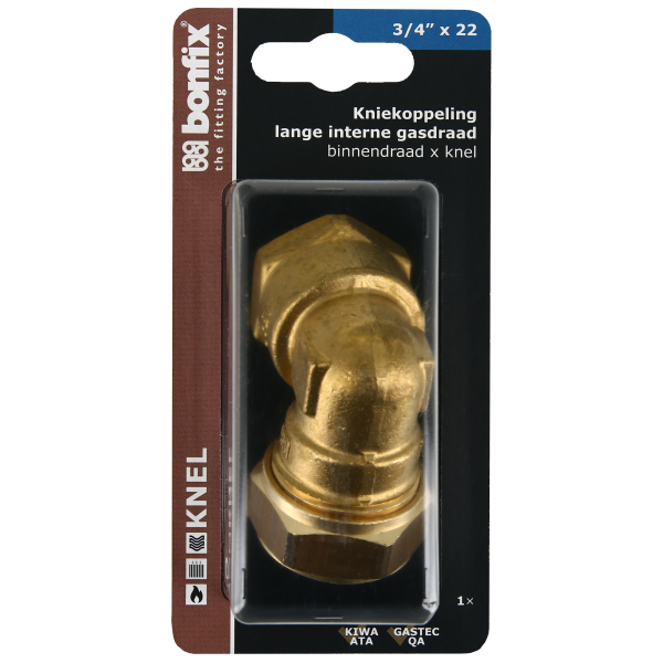 BONFIX Blister kniekoppeling 3/4" binnendraad x 22 mm