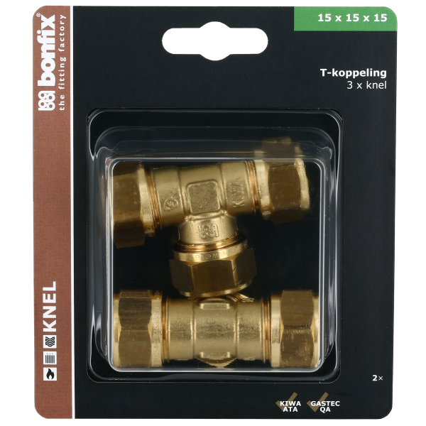 BONFIX Blisters: Messing & messing vertinde knelfittingen 15 x 15 x 15