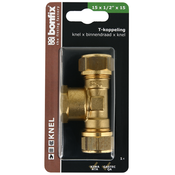 BONFIX Blister T-stuk 15 x 1/2" binnendraad x 15 mm