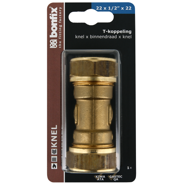 BONFIX Blister T-stuk 22 x 1/2" binnendraad x 22 mm