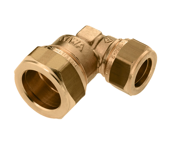 Zakverpakking: Messing & messing vertinde knelfittingen — Verloopknie